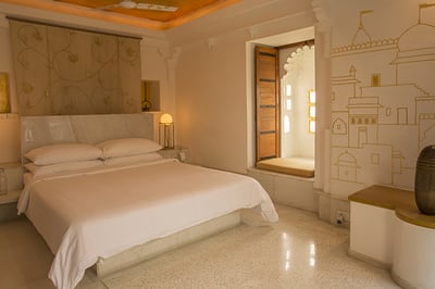 “This is an absolutely beautiful hotel. A stay here offers guests the rare opportunity to experience living on a fort where balconies look over frangipani-filled landscaped grounds and the open courtyard invites peaceful moments of total tranquillity. Opt for one of the Aravalli suites with stunning views of the Aravalli range. As it’s a heritage hotel, no two rooms are the same; have breakfast on your expansive balcony and soak up the solitude and special memories.”