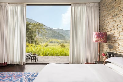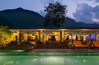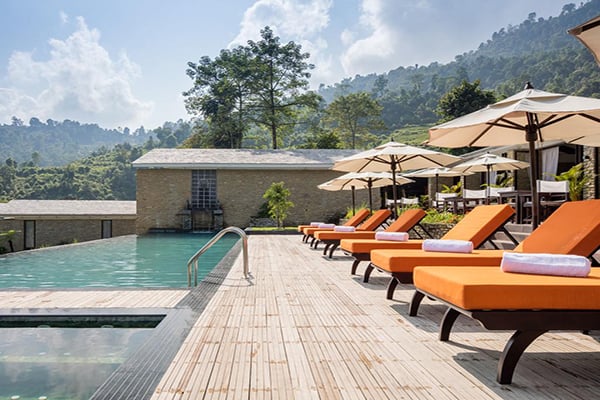 Nestled in the natural paradise of a lushly forested valley against the backdrop of the majestic Himalayan mountain range, The Pavilions Himalayas is an eco-sensitive resort that gives back to the local community. Tasteful design marries with mod-cons and natural surrounds; the prayer wheels which line the wall at the entrance set the tone perfectly.