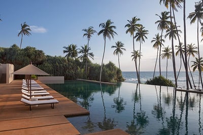 Comprised of 30 luxurious suites, the Amanwella design exudes clean sophistication with high terracotta roofs, hand-hewn stone walls, and large glass windows. Wake up to the sound of the Indian Ocean rolling up onto the soft sand before taking a refreshing pre-breakfast dip in your own private plunge pool.