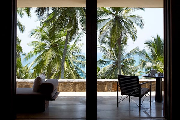 Amanwella’s suites are linked by pathways along a landscaped rise overlooking the beach. The hotel has plenty of nooks and crannies to explore and places to sit back and relax including sun decks around the 47-meter pool, two grassy courtyards, and an extensive library.