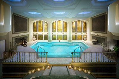 This luxury boutique hotel is set in lush, landscaped gardens in the famed Beverly Hills’ Golden Triangle in Los Angeles, California. Beverly Hills Montage has an air of refined elegance and combines grand Spanish colonial design with vintage Hollywood glamour, featuring chandeliers, mosaic tiling, marble flooring, fountain, and sculptures throughout.