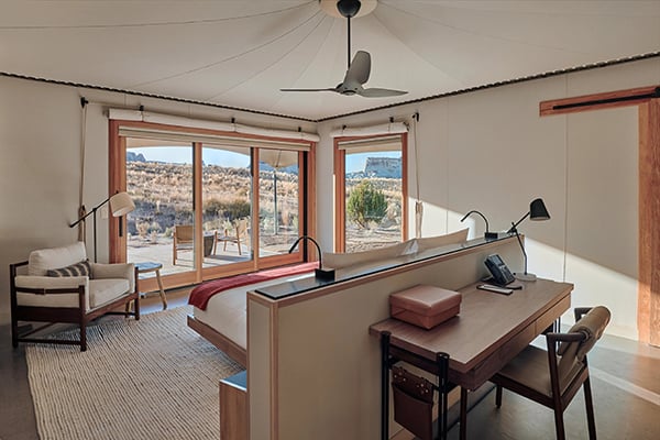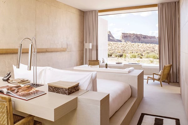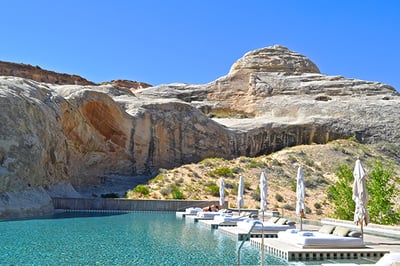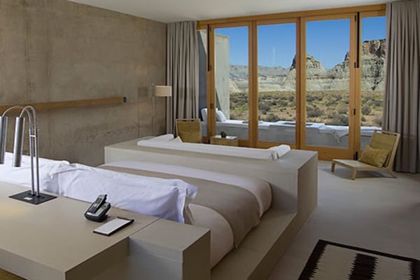It's wonderfully remote and surrounded by striking architecture. Guests come here to experience a sense of space, and to enjoy the renowned Aman service and facilities. The swimming pool is a particularly favorite spot, curving around a rock formation and blending into the scenery perfectly. The most stand-out room is the huge Amangiri Suite which comes with a beautiful lap pool and sky terrace.
