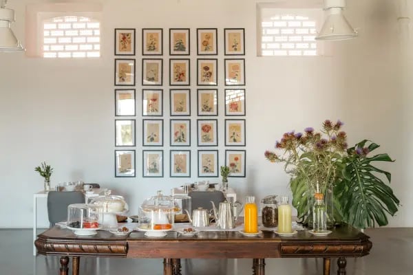 Indulge in farm-to-fork dining with meals crafted from fresh, locally grown produce. Enjoy organic eggs, freshly squeezed orange juice, local cheeses, homemade jams, and artisan breads. Lunch and dinner are available at the restaurant, but guests must request in advance. For a relaxing evening, guests can unwind at the honesty bar, creating their own cocktails in a welcoming, laid-back atmosphere.