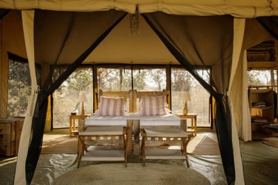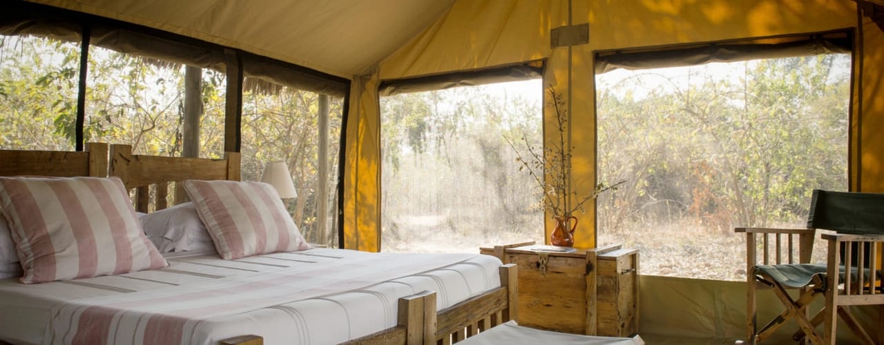 Kigelia Safari Camp maintains a real bush-camp feel with big airy safari tents sitting under shaggy thatch roofs to keep things cool, all set in the deep shade of the Kigelia trees from which the camp gets its name. Each tent features comfortable beds and traditional safari en-suite bathrooms with flush toilets and outdoor safari style bucket showers, as well as large verandahs. There is one large family tent with two en-suite bedrooms under one thatch roof.
