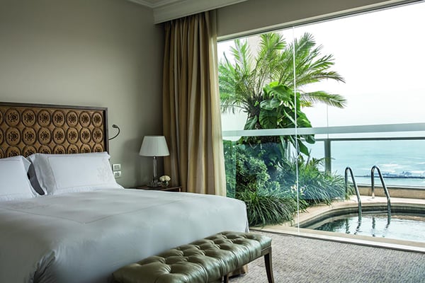 “Belmond Miraflores Park is centrally located with museums, shops, bars, and restaurants just moments away. Rooms are tastefully decorated with spacious bathrooms: the presidential suites have their own plunge pool and private terrace. Dining here is very good – expect to fill up on Asian-Peruvian and Mediterranean food, and the bar does great cocktails.”