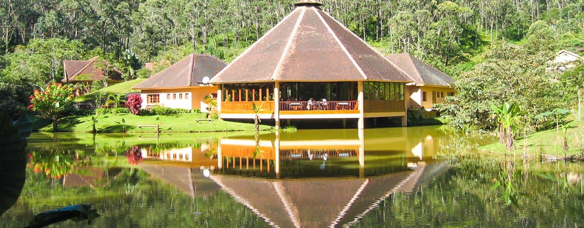 This well-established lodge in Madagascar, Africa boasts beautiful indigenous gardens and is set against the backdrop of the surrounding forest. Vakona Forest Lodge is the perfect base from which to explore the Parch National d’Andasibe-Mantadia as well as their very own lemur islands, a crocodile park and some great birding opportunities. Being within just a few minutes from the surrounding reserves, and situated on it’s own reserve, you can expect a plethora of wildlife during your stay here.
