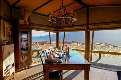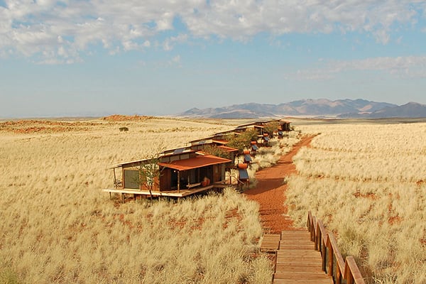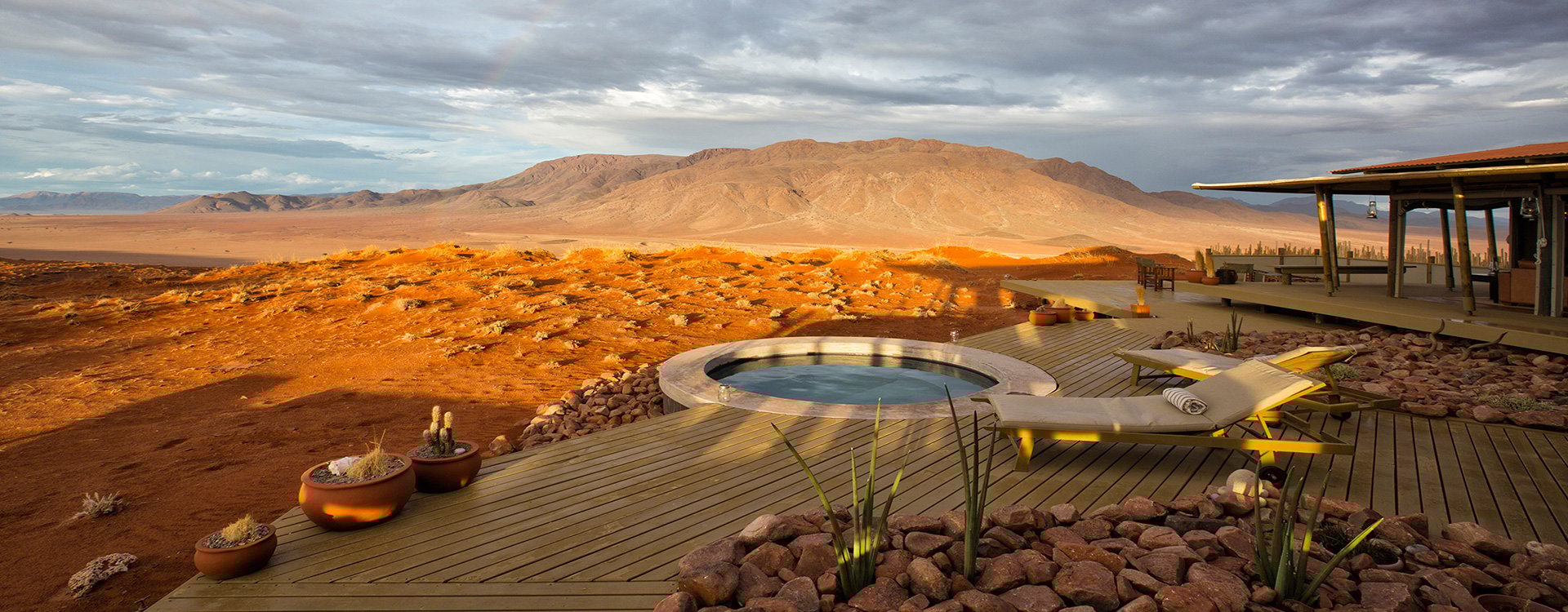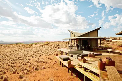 “Wolwedans is one of the world’s most remote and stylish lodges which lingers on the edge of a dramatic 820ft high dune. The building style is a combination of wooden structures and canvas blinds, opening up to the desert and beyond. The stunning chalets include spacious en suite bathrooms and private verandas. Those in need of extra relaxation spots can unwind in one of the inviting sitting rooms, enjoy a soak in the swimming pool, or lounge around the wide sundowner decks."