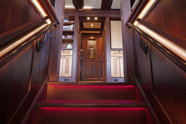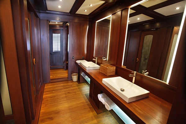 Social spaces o board provide environs for every need. The grand library and lounge, and shaded sundecks are perfect for finding a little peace and quiet, while the inviting open-concept galley and crisp linens on the teak table on deck are spaces to share the adventures of the day. Wherever you are, a member of the 20-person crew is at the ready, anticipating your every need.