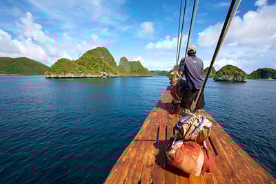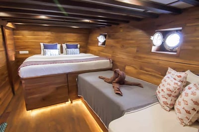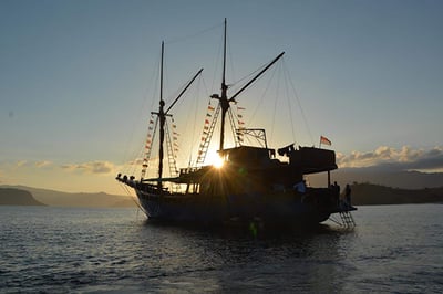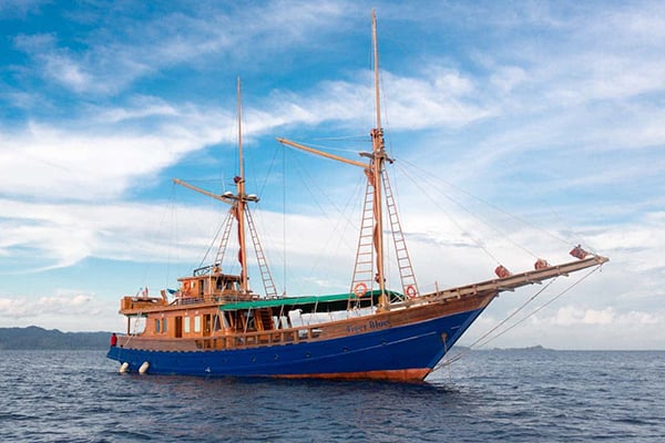“Explore the magnificent seas of Eastern Indonesia in the tradition of the great Bugis boats of South Sulawesi. Visit Komodo, Sumba, Flores, Banda, the remote Spice Islands and the incredible Raja Ampat, taking in the landscapes, coastlines and natural history of this magnificent archipelago. The five-cabin, 34-meter vessel is ideal for families and groups of friends on either private or shared charters. The friendly crew includes a licensed PADI Instructor and a PADI Divemaster.”