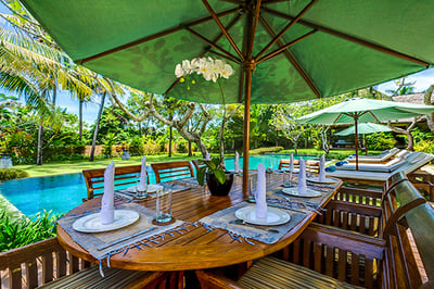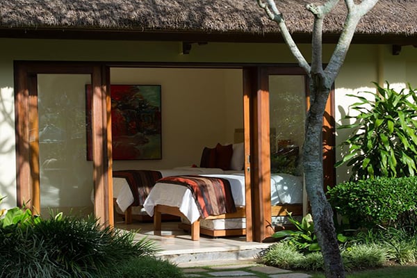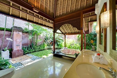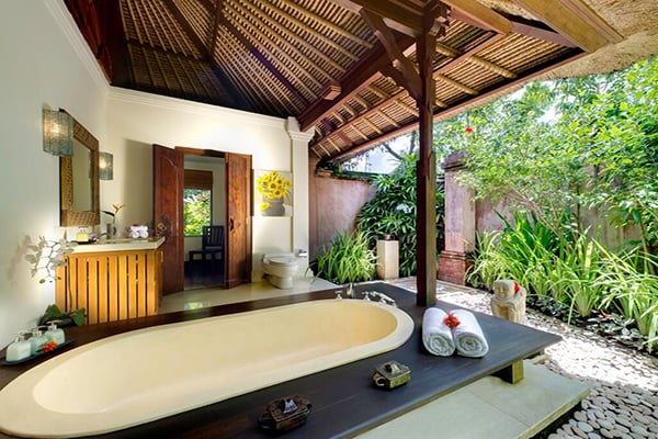 Designed like a Balinese family compound, this property is a stunning example of early Bali style, with open-sided living areas and air-conditioned en suite bedrooms with all mod cons. There’s an impressive 18-meter swimming pool at its center. It’s great for families and special occasions, comes fully staffed, and is close to local restaurants, nightlife, and the beach.