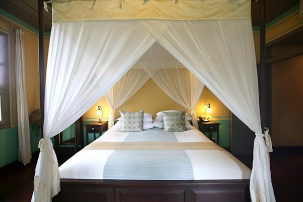 “Providing a nod to a regal bygone era, Satri House has a warm and inviting feel, offering guests total privacy and peace. Every room has its four-poster beds, retro phones and wooden furnishings. Satri House Suite 422 is very special, with its own lounge full of antiques. Outside, the two pools are super-welcoming. The main pool sits in the shade of the main house. The newer pool is near the spa complex.”