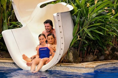 - Four outdoor swimming pools with water slides