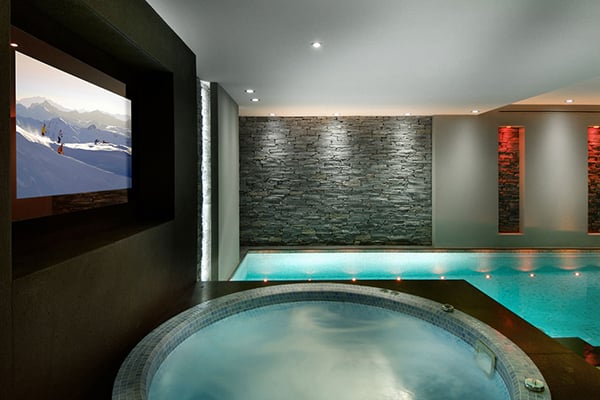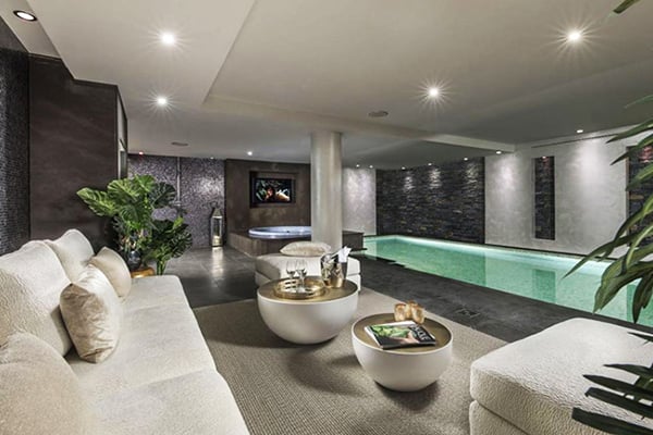 We love how Chalet Le Blanchot’s state-of-the-art facilities and its natural materials emphasize the mountains. The top floor is home to a large open plan living and dining room where you can relax next to the open fireplace after a long day of skiing or hiking. The chalet is equipped with the very best in designer furnishings and offers impressive views. After a long day enjoys the swimming pool, hot tub, and steam room, or the home cinema room with reclining chairs. This chalet ticks all the boxes for us!