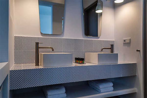 This is a friendly and intimate hotel, small in size but big on warm welcomes and helping guests feel comfortable. The property is ideally located within walking distance to Pollonia and comes highly recommended for families who want a mix of activities and relaxation. The minimalist rooms are simple with a white and blue color scheme, crisp white bedding, and a private terrace. The best spot is in the pool which offers spectacular sea views.