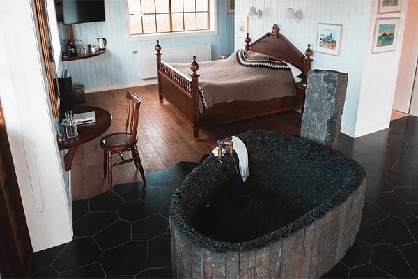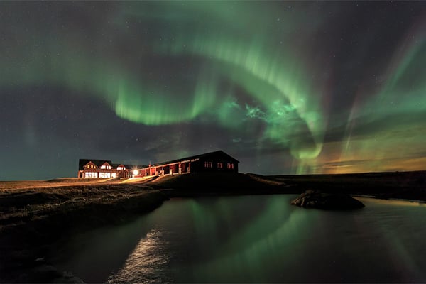 Offering unrivaled service, warm hospitality, and outstanding cuisine, this boutique lodge will appeal to adventurous travelers seeking a secluded and relaxing escape in an enchanting setting. Activity-wise, anything goes. See an active volcano, take a helicopter up Mount Hekla or enjoy dog-sledding. Romantics can horse ride across the moors or sip Champagne in the hot tub.