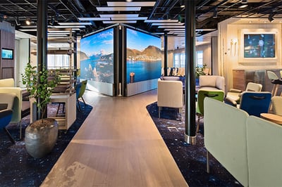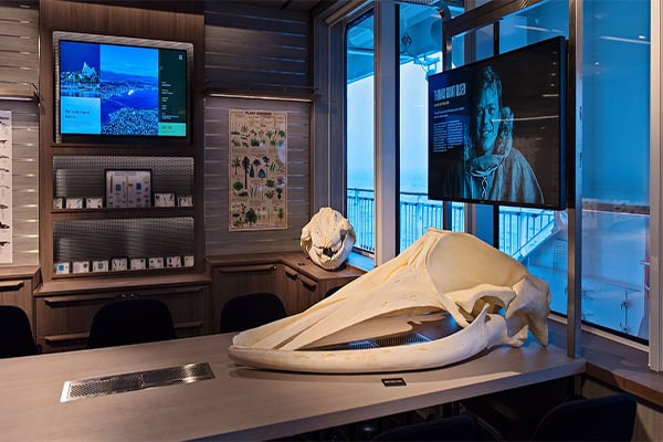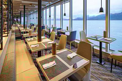 Hurtigruten’s fleet of ships vary in size, style, identity, and atmosphere, and the cabins range from cozy and intimate to larger suites with private balconies. The large lounges are great for relaxation and listening to lectures, and the library keeps you well-educated as you sail. Impressively designed, some of the vessels even feature a swimming pool.