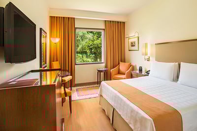 “Trident is a beautifully-run five-star hotel just over a mile from the Taj Mahal. Set in extensive grounds in a quiet neighbourhood, it's a peaceful refuge from the noise, and a lovely place to relax. Rooms are welcoming with modern technology and en suites with bathtub and shower, and the suites offer comfortable living/dining areas. It takes 10 minutes by car to reach the Shilpgram ticket office - the access point for entering the Taj Mahal by the East Gate.”