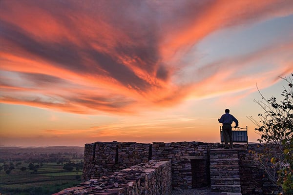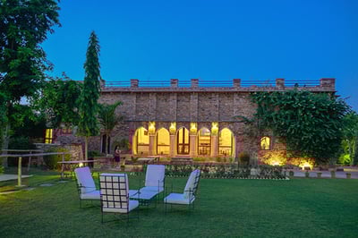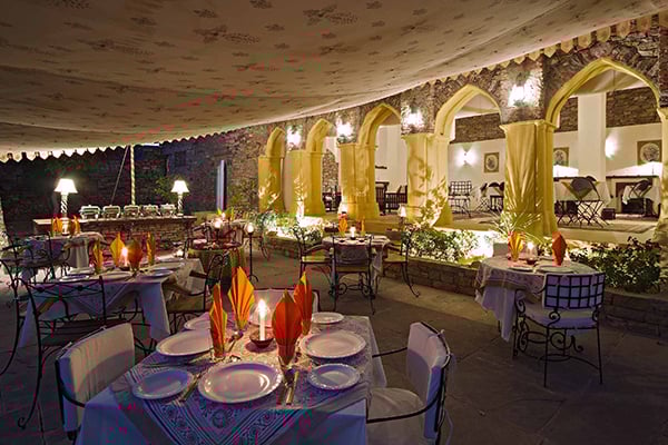 A world away from the chaos of urban India, this property within a 350-year-old fort has amazing views and offers an insight into rural Rajasthan. Staying here is impossibly romantic; think fading grandeur and tumbling bougainvillea-covered walls, outdoor bathrooms and atmospheric lanterns. Go all out and enjoy an outdoor candlelit bath from your Luxury Suite.
