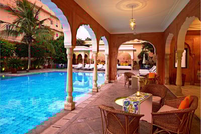 This 300-year-old haveli has been brought into the modern world and is now famous for being one of Jaipur’s best-loved heritage hotels. The rooms and suites are sumptuous and sublime with four-poster beds, block prints and Kashmiri-style rugs. For a special treat reserve Room 115, the haveli’s original sheesh mahal, which hosts incredible murals and mirrorwork. We also love the leafy garden, which is a wonderful sanctuary away from the city.