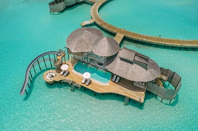 Soneva Jani in the Maldives is the epitome of ‘no shoes, no news’ living and the height of Maldives at its most magical. An amazing resort located in Noonu Atoll, it’s only 40 minutes away from Malé by seaplane. This property is the proud owner of one of the largest overwater villas in the Maldives, complete with a moveable rooftop so you can see the stars directly above from your villa, and water slides which promise hours of fun for all!