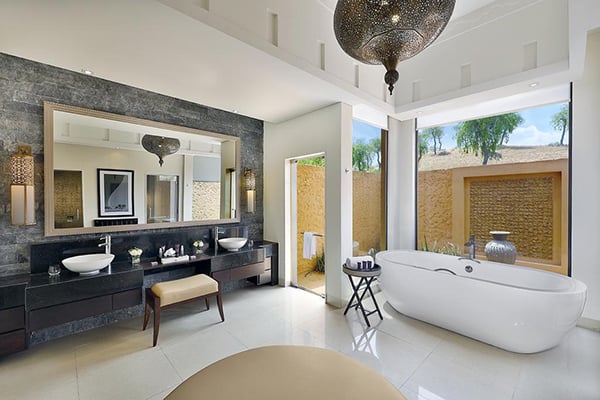 The Ritz-Carlton Ras Al Khaimah, Al Wadi Desert is an all-pool-villa resort, formerly run by Banyan Tree. We love the style of the villas here featuring cosy living areas, stand-alone tubs and infinity pools. Some have steps directly down to the dunes, while others are more private. The professional and discreet service is also impressive.