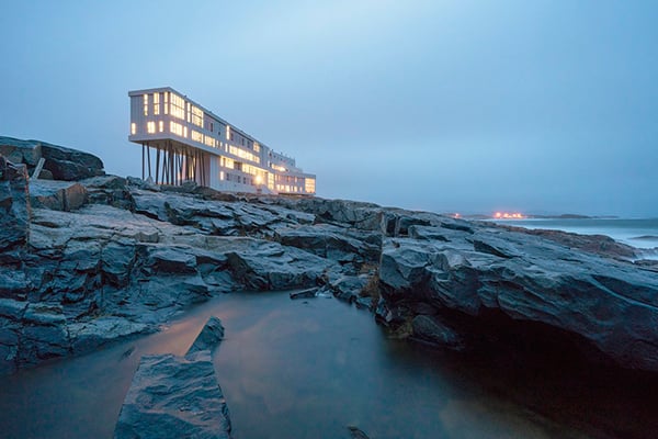 As unique and remote as the island it sits on, Fogo Island Inn is situated on one of the Earth’s four corners along the coast of the most powerful ocean on the planet, the Northern Atlantic. Fogo Island Inn was uniquely built on stilts to withstand the test of time and the tumultuous changes in seasons, the design inside and out is prided on the harmonious meld between the traditional Fogo Island way of living and a modern twist.