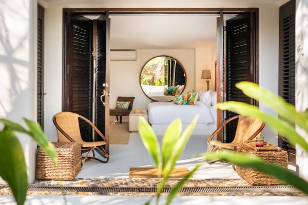 CartagenaHotel Agua Barú is a dreamy tropical retreat just 50 minutes from Cartagena on the Caribbean Coast of Colombia where you can admire the views of the Rosario Islands, Barú, and part of the skyline of Cartagena in the distance. This charming boutique hotel, available to rent on an exclusive or per room basis, features just three thatched villas or 'casitas', offering guests a unique and personalized experience.